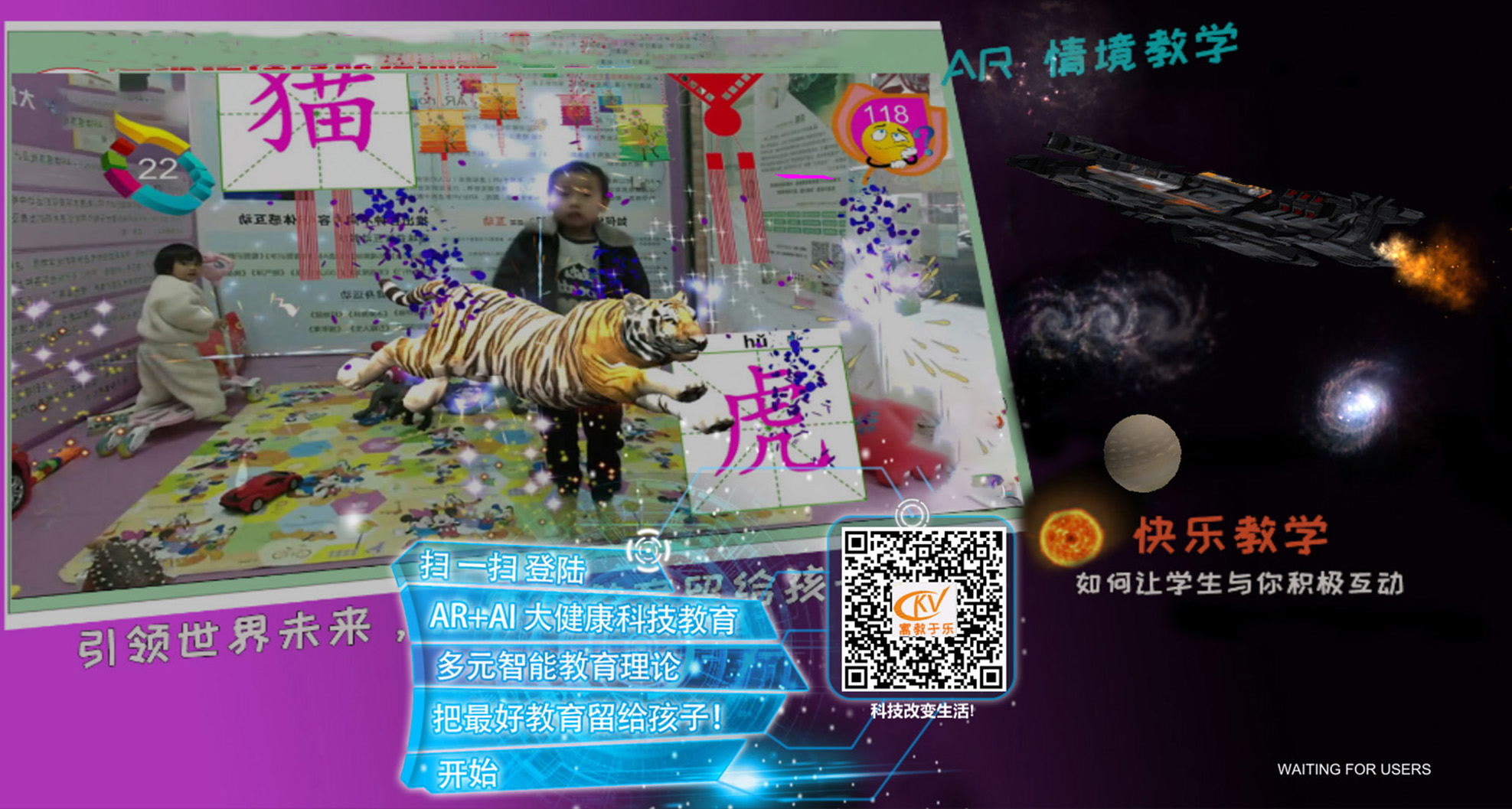 ased on the plasticity of the brain, it is constructed using big data processing, cloud technology, blockchain technology, point cloud technology, brain control technology, (AR, MR, holographic) technology and combined human-computer interaction technology (hardware has been designed and developed) China's leading AR education and learning interactive system。